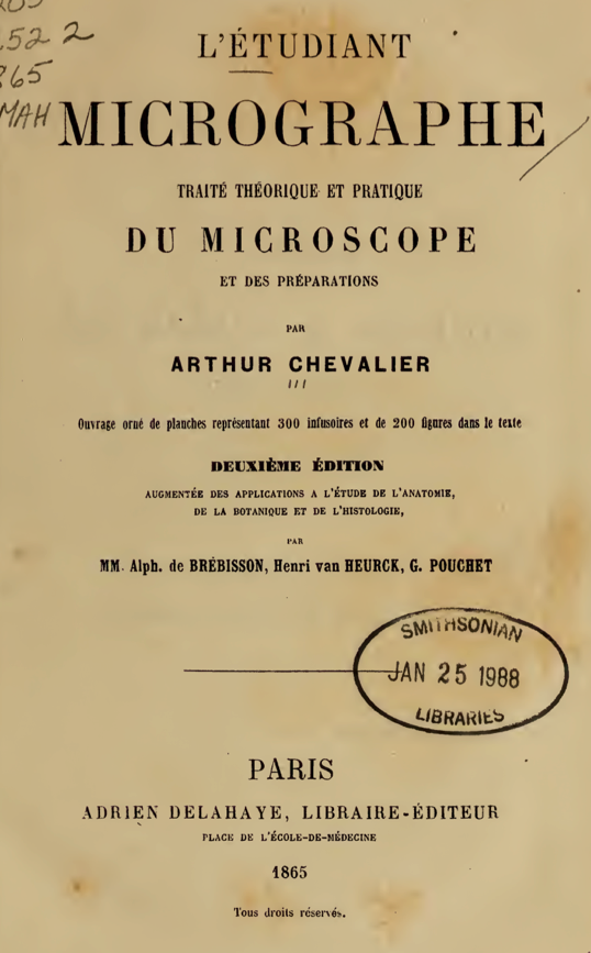 L’etudiant micrographe traite theorique et pratique du microscope et des preparations